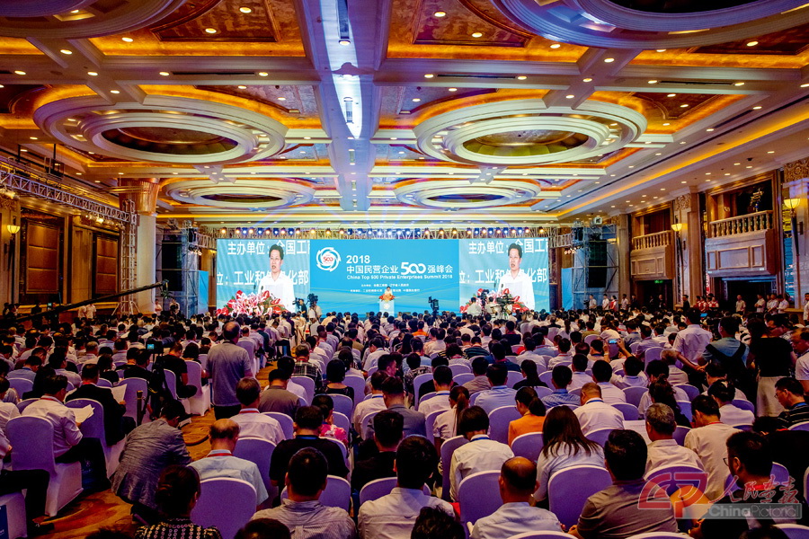 8月29日上午,由全国工商联和辽宁省人民政府共同主办的2018中国民营企业500强峰会在辽宁沈阳召开。 摄影 郭莎莎/人民画报