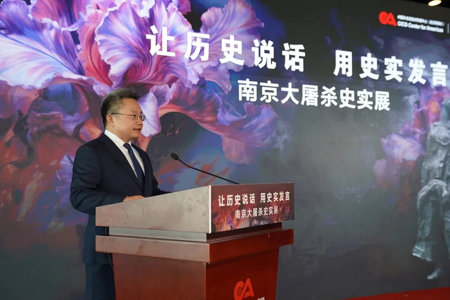 今年是中国人民抗日战争暨世界反法西斯战争胜利80周年。中国人民抗日战争开辟了世界反法西斯战争的东方主战场,为世界反法西斯战争的最后胜利作出不可磨灭的重要贡献。其中,震惊中外的南京大屠杀是这段历史中不能忘却的记忆。“但令人遗憾的是,时至今日国际社会对正确二战史观的认识还有欠缺,对中国人民抗日战争为世界反法西斯战争最终胜利所作的重要贡献还缺少共鸣。这些都有悖于历史正义。”中国外文局美洲传播中心主任辛峰在开幕致辞中说。