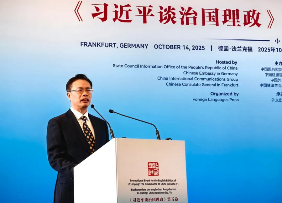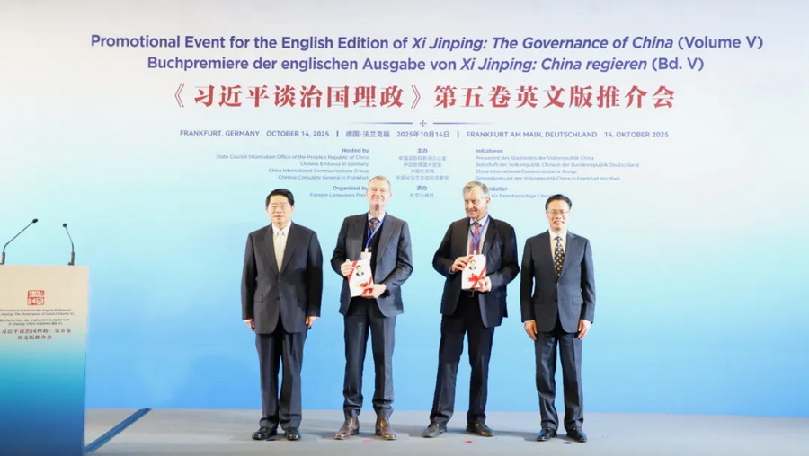 当地时间10月14日,《习近平谈治国理政》第五卷英文版推介会在德国法兰克福举办。中国驻德国大使邓洪波,中国外文局副局长余应福,德国汉学家、历史学家培高德,德国黑森州国际部前部长博喜文出席活动并致辞。