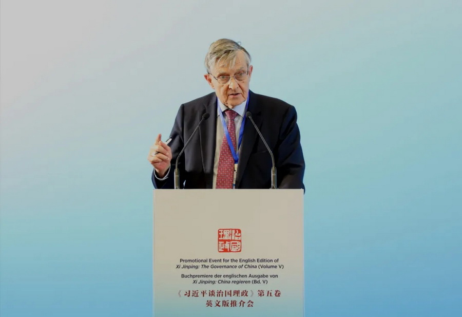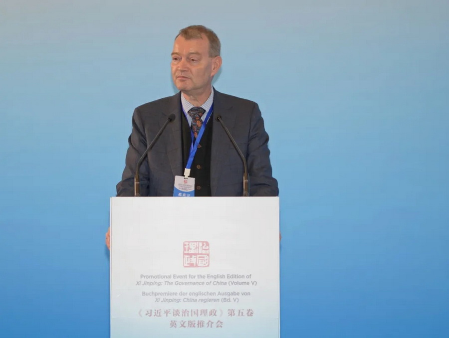 培高德回顾了《习近平谈治国理政》第一至五卷的出版历程,他指出,第五卷按主题分类收录了习近平主席系列讲话,这些讲话围绕中国持续成功的发展以及中国在世界上的角色展开,内容广泛精彩,译文流畅,阅读这本书有助于更好地理解习近平新时代中国特色社会主义思想和中国治理理念。