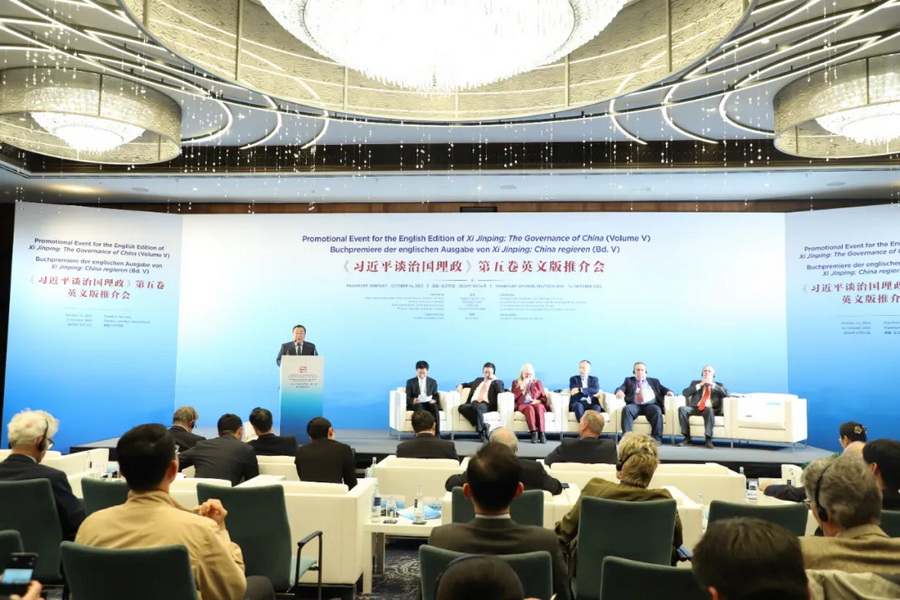 中国驻法兰克福总领事黄昳扬结合第五卷丰富内容,从读懂民心相通的重大意义、读懂中国式现代化的深刻内涵和读懂全球治理的中国担当等方面,阐释了本书重要的世界意义和时代价值。黄昳扬认为,这部著作的出版对进一步推动中外治国理政经验交流和文明互鉴,具有深远的意义。