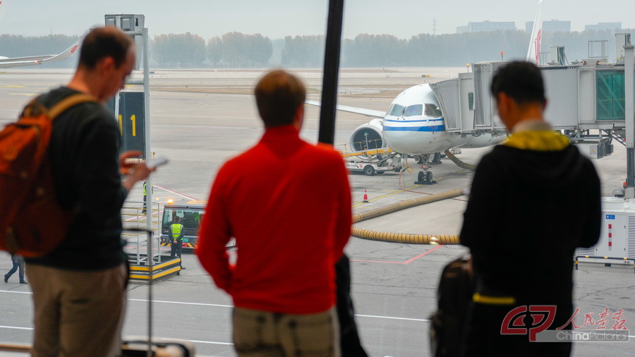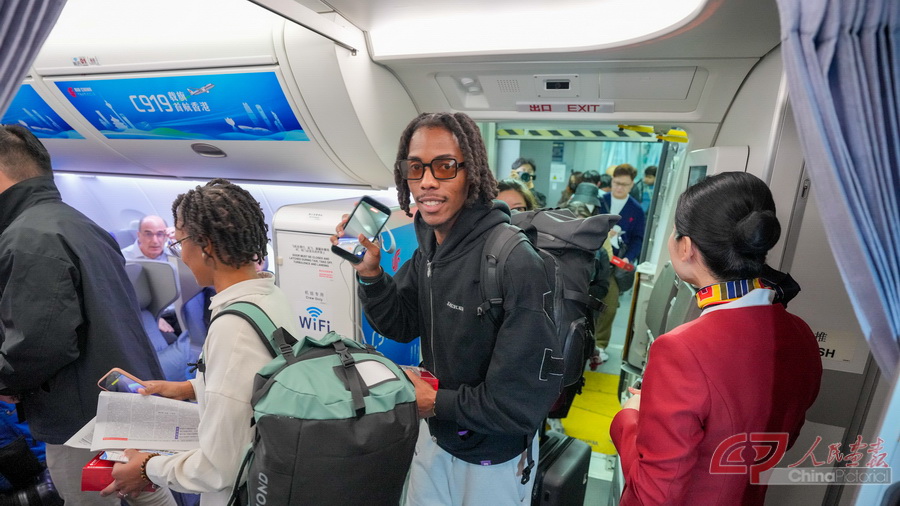 首航航班上,许多外国乘客是首次体验国产大飞机。 摄影 万全/人民画报