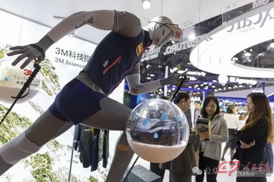 在第八届中国国际进口博览会技术装备展区,3M以“3M科技共创绿色未来”为主题,对其服务的五大重点领域——工业、安全、汽车、电子及消费进行分区展示。(摄影/人民画报 段崴)