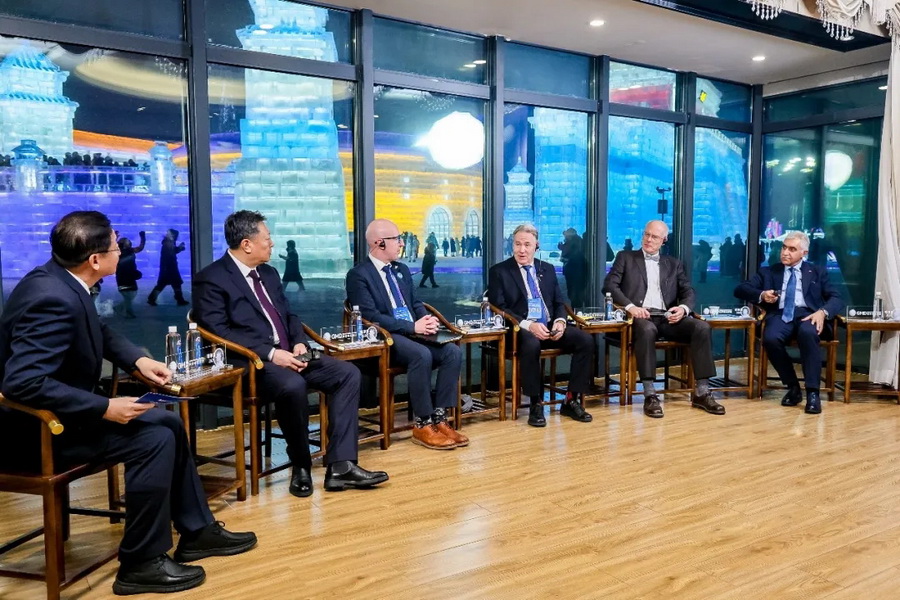 1月7日,在“世界市长对话·哈尔滨”主对话活动上,(中国)哈尔滨市市长王合生、加拿大埃德蒙顿市市长安德鲁·纳克(Andrew Knack)、芬兰罗瓦涅米市市议会副议长海基·康蒂奥萨洛(Heikki Kontiosalo)、德国马格德堡市副市长索斯藤·克罗尔(Thorsten Kroll)、希腊哈兰德里市副市长克里斯蒂娜·梅查尔拉(Christina Machaira)、韩国富川市副市长南东颎(颎jiǒng,Nam Dong Kyeong)、泰国清迈市副市长威萨卡·帕尼亚猜(Wisakha Panyachuai)、土耳其埃尔祖鲁姆大都会市副市长扎费尔·艾纳勒(Zafer Aynalı)等中外嘉宾们分享了各自城市在冰雪产业发展、城市治理等领域的实践经验和共同期许。