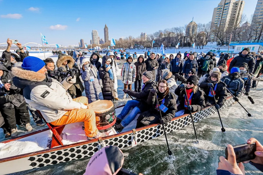 △与会嘉宾参访松花江冰雪嘉年华并沉浸体验“冰天雪地 欢乐同行”活动。