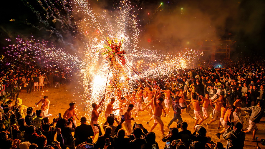 2024年2月24日,农历正月十五,国家级非物质文化遗产“埔寨火龙”表演在广东梅州埔寨镇火龙广场举行。 摄影 邱家忠