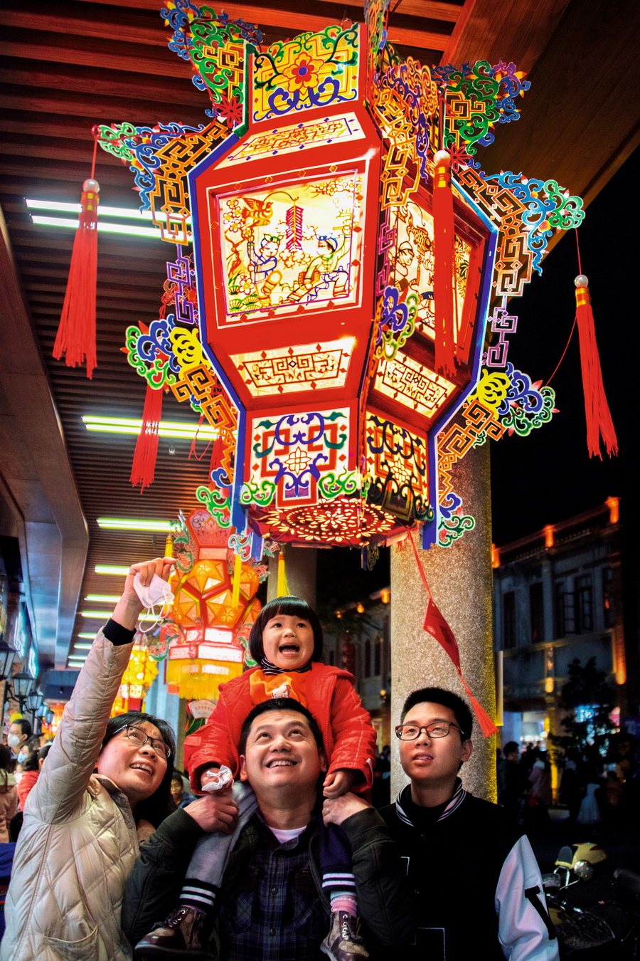 2023年2月4日,农历正月十四,福建泉州中山路的元宵节灯展流光溢彩,游人争赏花灯。 摄影 刘宝生