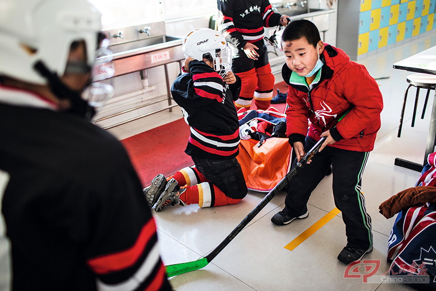 2017年寒假前,赵纪生决定组建“山里娃冰球队”,主要成员是学校五、六年级的孩子,这个冰球队是男女组合的队伍。说到组建冰球队的初衷,赵纪生和珍珠泉乡中心小学校长的想法一致——想让孩子们锻炼好身体,开阔眼界。在冰球队里,赵纪生不仅是老师,有时也是孩子们的爷爷,碰到调皮不好好上学的学生,他会去他们的家里家访;学生想参加他的冰球队,他有要求,学习成绩好才有资格被选上。如今滑冰已经成为珍珠泉村孩子的“必修课”。经过滑冰课的训练,孩子们的技术不断提高。