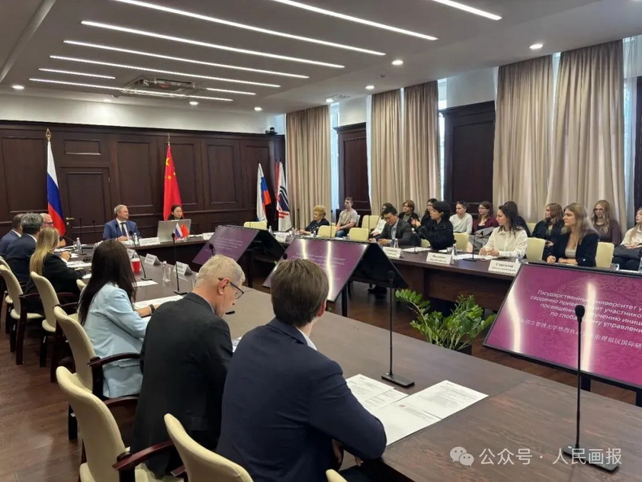 2025年9月12日,由中国驻俄罗斯大使馆、中国外文局中东欧与中南亚传播中心(人民画报社)和俄罗斯国立管理大学联合主办的《习近平谈治国理政》第五卷(中英文版)暨全球治理倡议研讨会在莫斯科举办。中国驻俄罗斯大使馆公使衔参赞赵薇,俄中友好协会第一副主席、中华人民共和国“友谊勋章”获得者加琳娜·库利科娃,俄罗斯国立管理大学副校长德米特里·布留汉诺夫以及管理大学青年学生代表等60余名中俄各界代表出席本次活动。