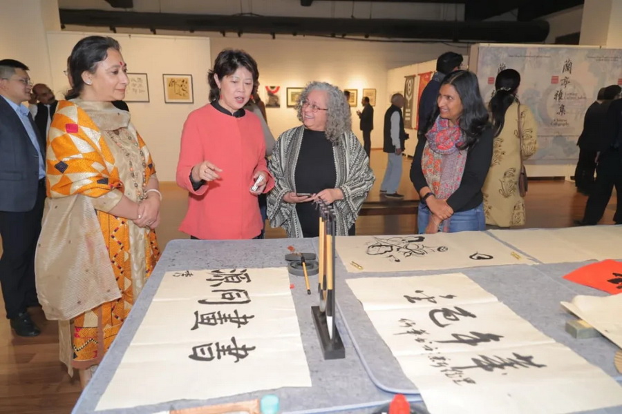 12月14日,“兰亭·雅集”中国书画展在印度首都新德里举行。(图片来自中国驻印度大使馆网站)