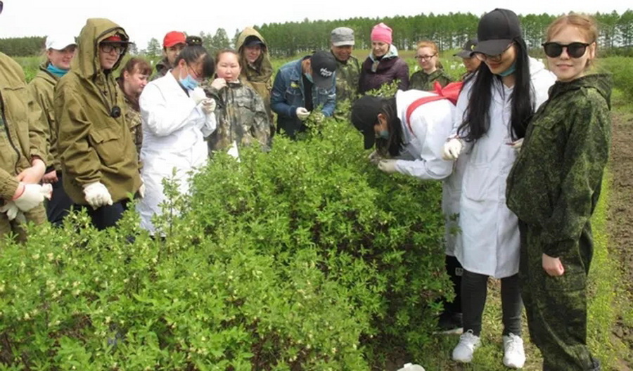 俄罗斯远东国立农业大学大学生在中俄林业科技合作园区实习。供图/ 黑河生态环境部