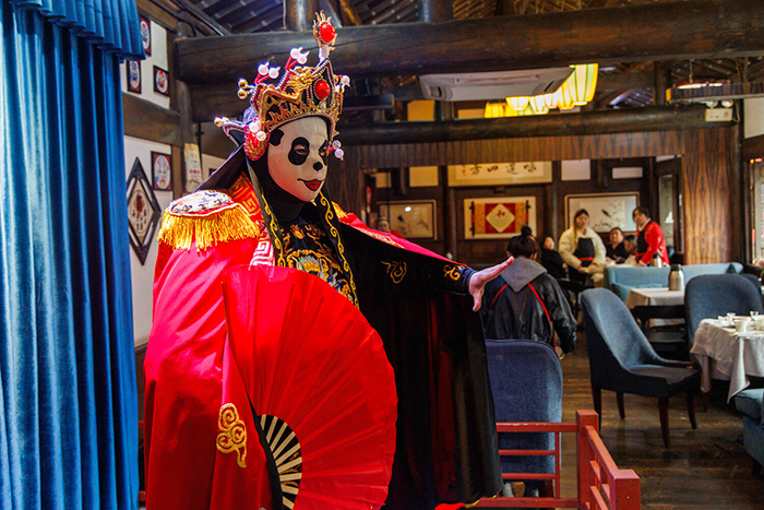 2025年2月26日,四川成都,熊猫脸谱变脸表演。摄影 李玲立