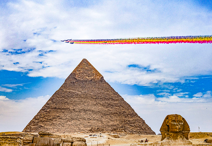 《中国空军表演机编队飞越金字塔》
