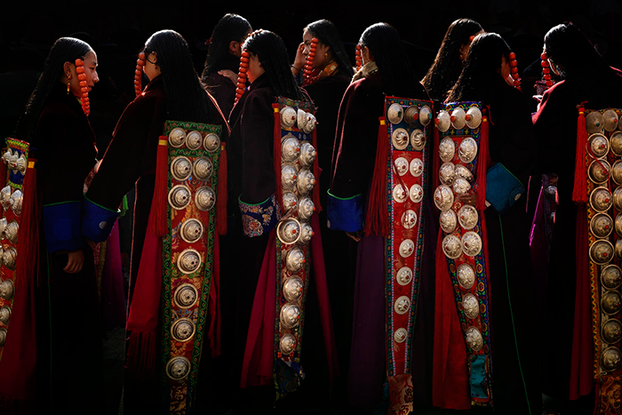 2024年7月24日,青海省黄南藏族自治州同仁市,身着盛装的少女参加当地的传统民俗活动——热贡六月会。摄影 陈燕