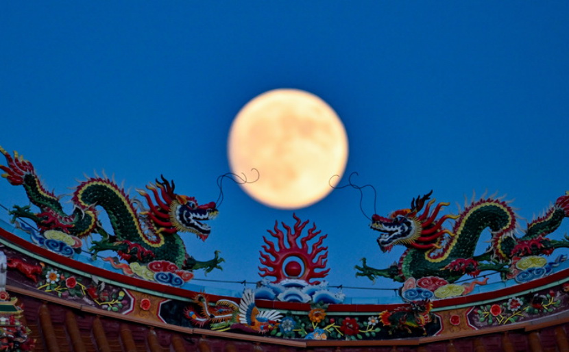 由于地球自转,月亮是东升西落。通常,月亮刚升起或即将落下时,其与地面的相对位置较低,适合通过前景元素增加照片的层次感和深度,拍摄景物和一轮明月的“合影”。如果你能用上长焦镜头配单反相机,或是变焦范围很大的手机,拍出这样的照片并不难。