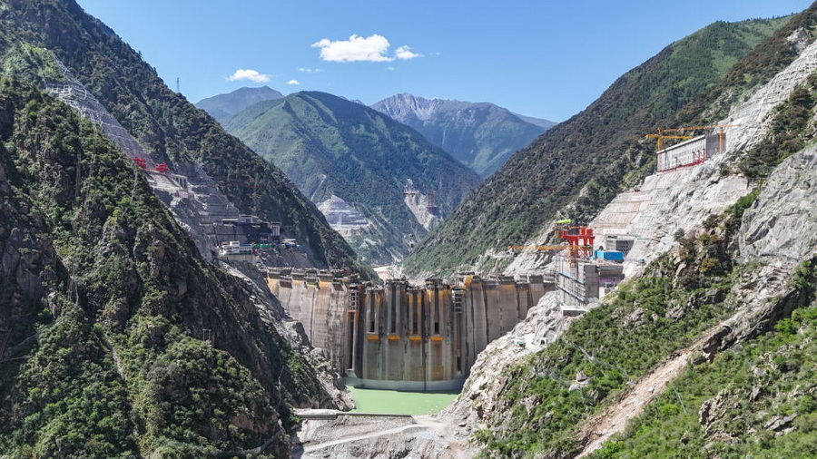 建设中的叶巴滩水电站(2025年6月30日摄,无人机照片)。该水电站地处四川甘孜州白玉县与西藏昌都市贡觉县交界处的金沙江上游。新华社发(陈浩 摄)