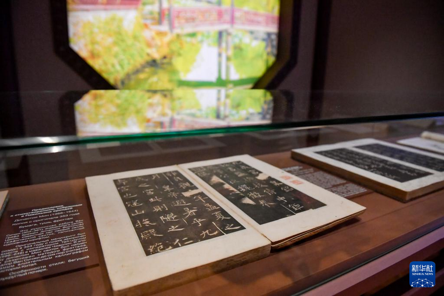 这是11月17日在俄罗斯莫斯科特列季亚科夫画廊拍摄的“心之所向:中国国家博物馆藏14—19世纪中国书画艺术”展览上的展品《九成宫醴泉铭》碑帖拓本。新华社发(亚历山大摄)