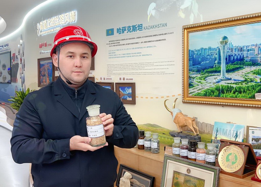 “这是来自我们哈萨克斯坦的小麦。”基地展厅里,公司副总经理别杰罗夫·阿金汉举起金黄饱满的小麦,满脸自豪。