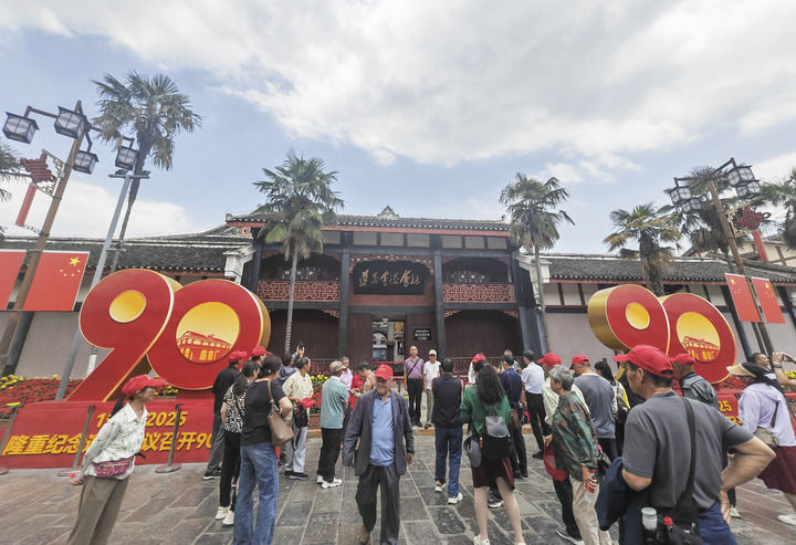 人们在遵义会议会址门前参观、留影(2025年5月13日摄)。新华社记者 李惊亚 摄