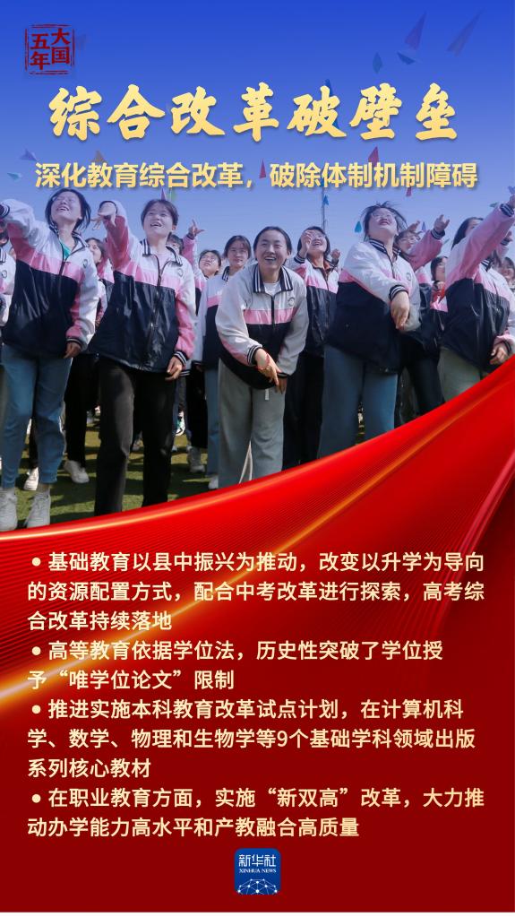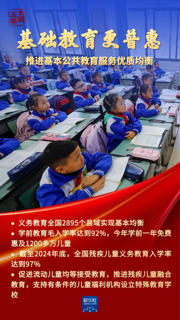 十年树木、百年树人。“十四五”以来,我国建成世界规模最大且高质量的教育体系:孩子们“身上有汗、眼里有光”,理想信念的灯塔照亮青春征程;所有家庭经济困难学生资助全覆盖,每个孩子都拥有人生出彩的机会;高等教育步稳蹄急,赋能中国式现代化行稳致远……