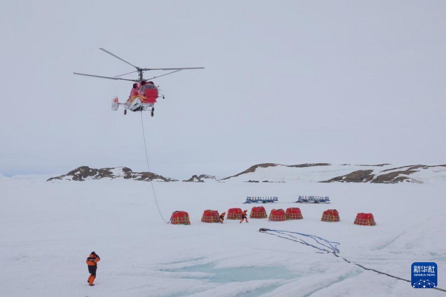有的负责物资出舱与绑扎,有的操作机械挂钩,有的负责油料加注,有的承担通信与气象保障……尽管冰情复杂、任务艰巨,在甲板、货舱、冰面、站区、停机坪,处处可见队员们分工明确、配合默契的身影。