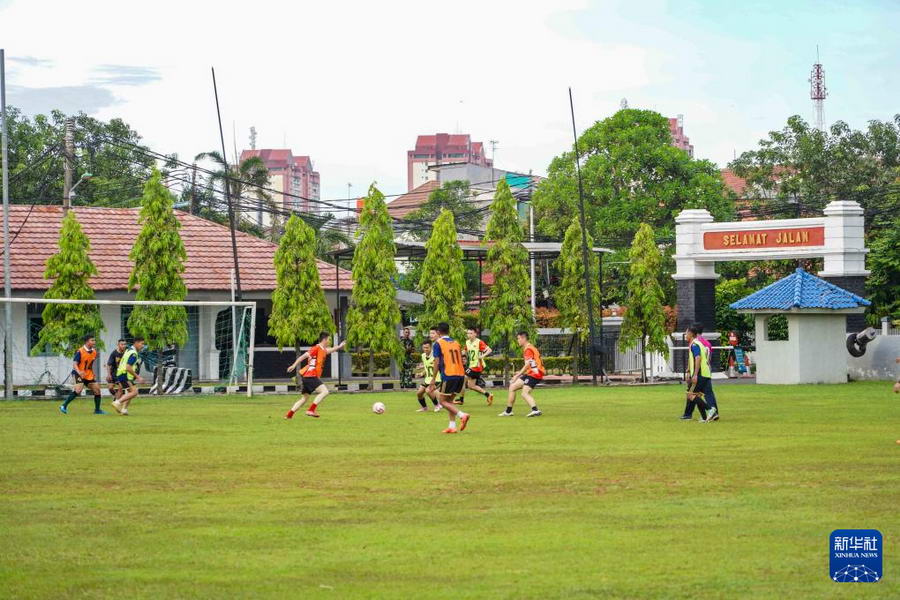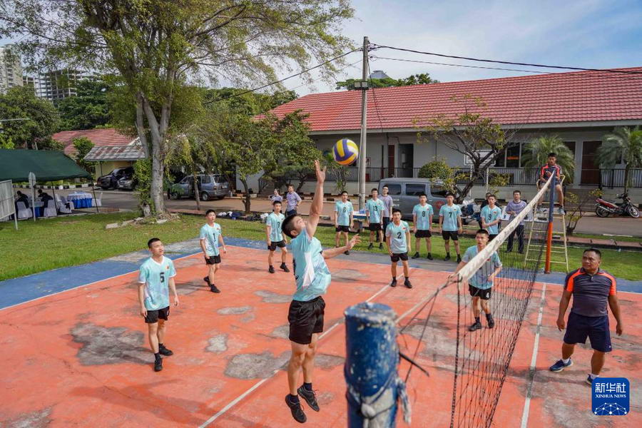 12月8日,中国海军989编队组织学员代表赴印度尼西亚海军陆战队,同印尼海军青年官兵开展体育交流。新华社发(于涛 摄)