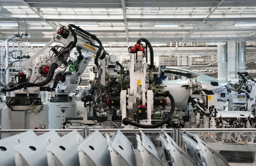 2025年6月16日,机器人在北京小米汽车工厂车间流水线上工作。新华社记者 郑焕松 摄