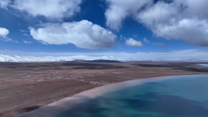 青海三江源国家公园长江源园区可可西里卓乃湖一角(2023年6月17日摄,无人机照片)。新华社记者 张宏祥 摄
