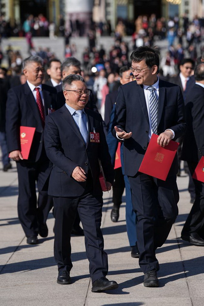 3月11日,全国政协十四届四次会议在北京人民大会堂举行闭幕会。这是闭幕会后,委员们走出人民大会堂。