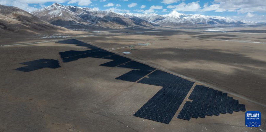 这是中广核当雄乌玛塘“光热+光伏”一体化项目(4月6日摄,无人机照片)。新华社记者 丁增尼达 摄