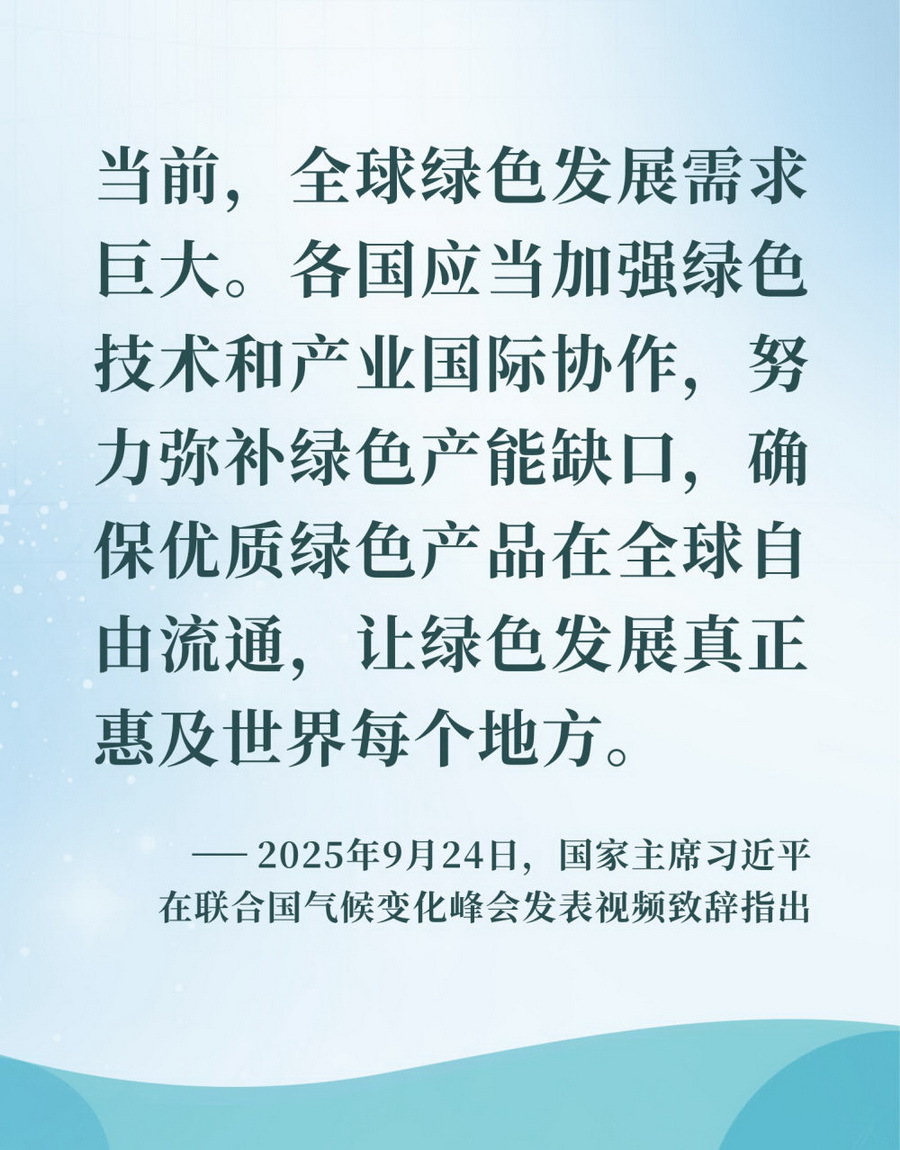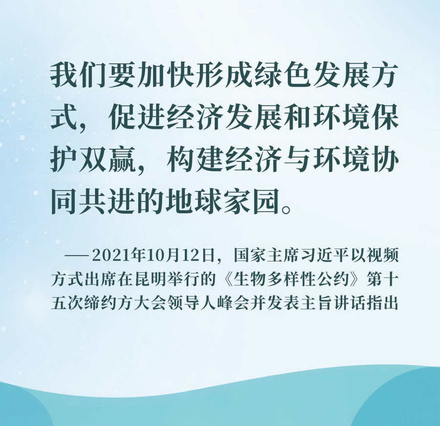 胸怀人类共同的前途命运,习近平主席多次呼吁加强绿色国际合作,共享绿色发展成果。