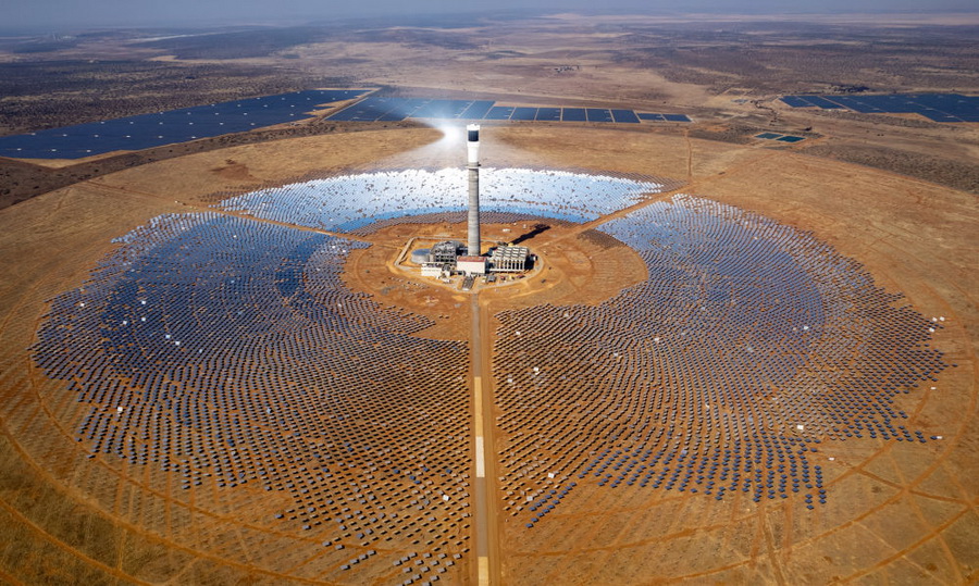 这是2024年8月20日在南非北开普省拍摄的红石100兆瓦塔式熔盐光热电站项目(无人机照片)。该项目由中国电建集团山东电建三公司承建,是撒哈拉以南非洲首个塔式熔盐光热电站,也是南非最大可再生能源投资项目之一。