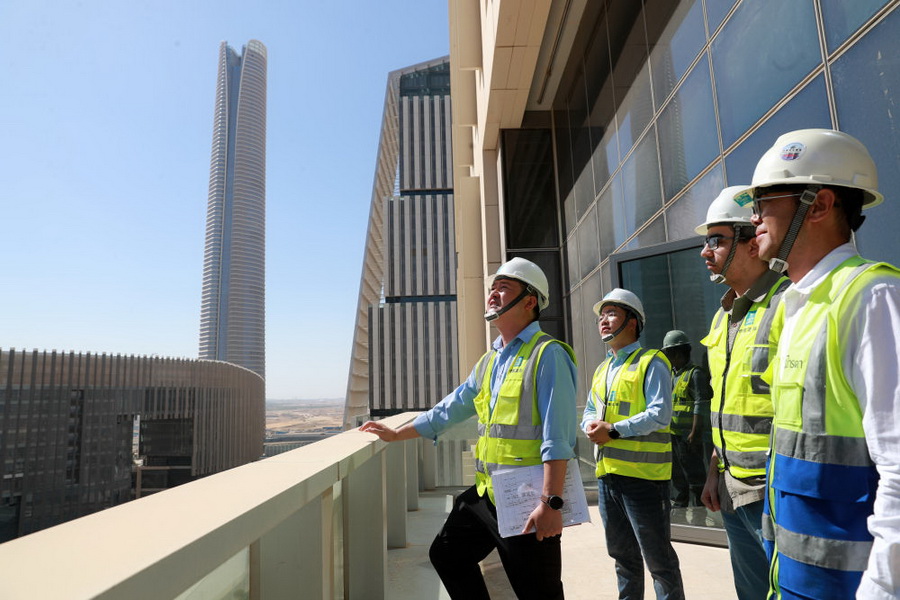 由中建集团承建的埃及新行政首都中央商务区不仅是埃及国家复兴计划的重要工程,也是中埃共建“一带一路”的重点。在项目建设过程中,中埃参建单位共同努力,借鉴中国成熟方案,通过加强公共交通规划、采用节能建筑技术、降低建设资源消耗、提升能源使用效率等一系列措施,打造“绿色项目”,也为埃及的绿色科技创新、绿色产业升级提供借鉴。这是2024年9月18日,机电工程团队在建设现场工作。