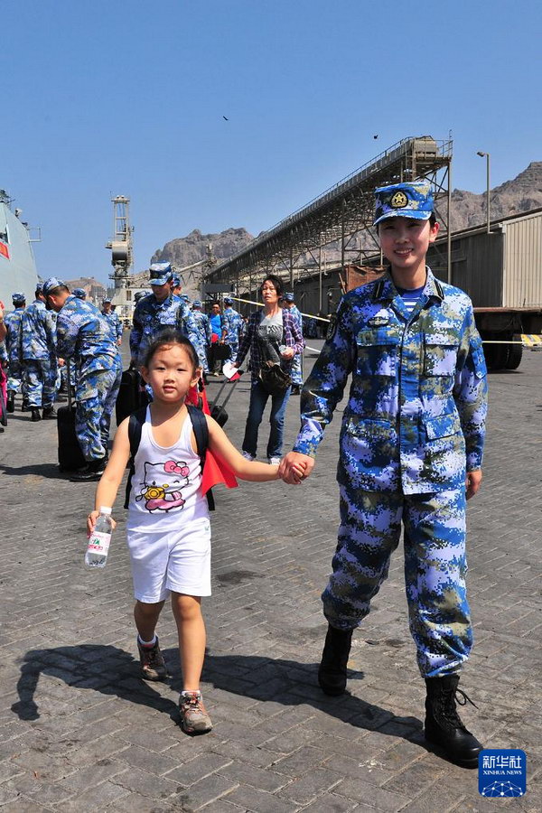 当年3月29日,临沂舰抵达也门亚丁港,随舰执行护航任务的女舰员郭燕被分配到安检组,负责在安检后陪同撤离人员登舰。她回忆,靠岸时远远望去,山头仍有腾起的浓烟;再近点,爆炸声清晰可闻。在港口等候的同胞们挥舞国旗,高呼“祖国万岁”。
