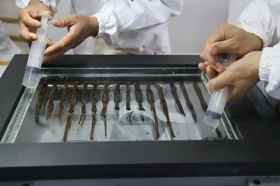 工作人员在对出土简牍进行红外扫描。江西省文物考古研究院供图