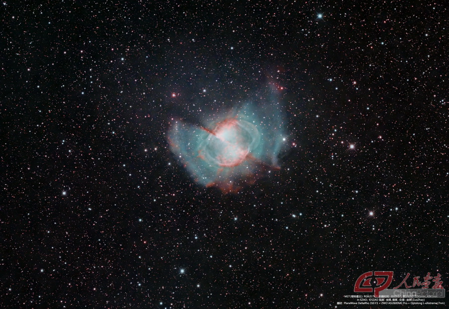 天文爱好者在深圳市天文台观测到的M27哑铃星云。 观测:坐照、德莱;处理:坐照