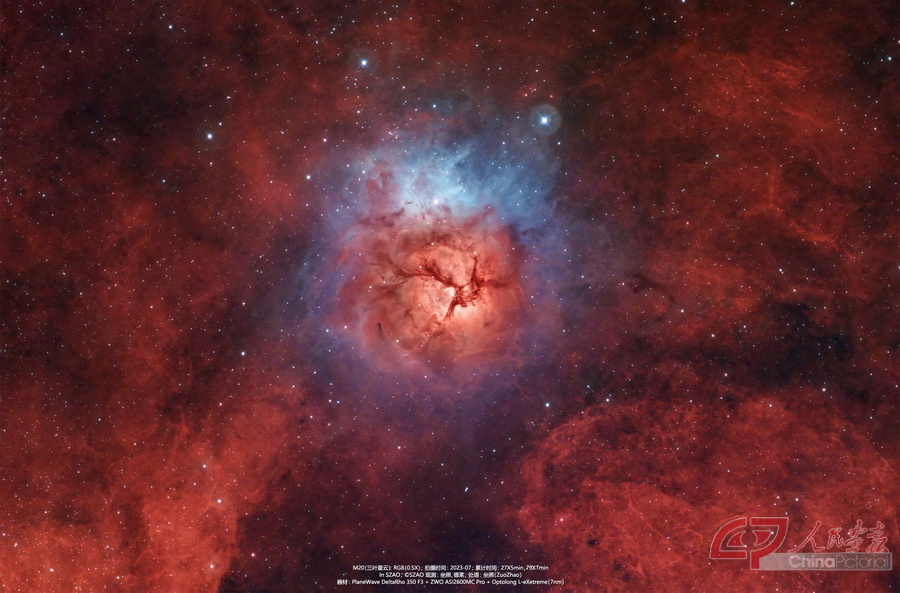 天文爱好者在深圳市天文台观测到的M20三叶星云 观测:坐照、德莱;处理:坐照