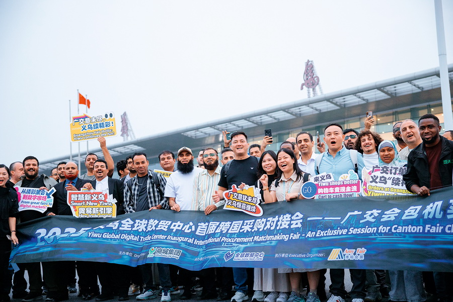 100余位来自欧洲、中东等地区的境外专业采购商在全新启用的义乌第六代市场—全球数贸中心参加多场跨国采购对接活动,挖掘新商机,寻找新风口。 视觉中国 供图