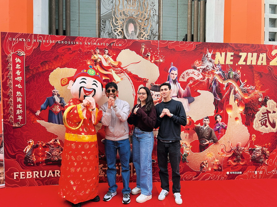中国动画电影《哪吒之魔童闹海》在美国洛杉矶的好莱坞TCL中国大剧院举行北美首映礼,吸引了数百名“哪吒”粉丝和部分中美两国电影界人士参与。 视觉中国 供图