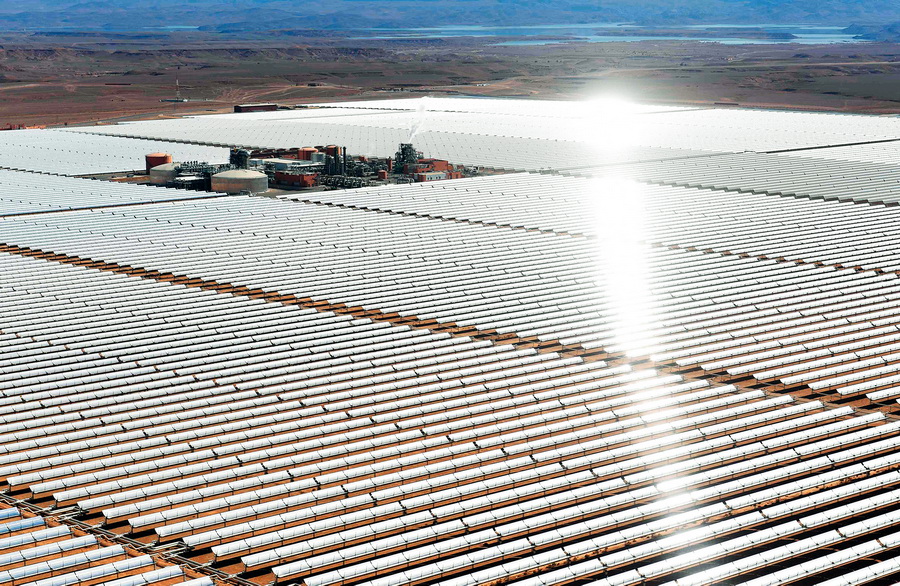 在摩洛哥瓦尔扎扎特的努奥光热电站项目。从2015年起,中国电建集团下属的山东电建三公司在瓦尔扎扎特承建努奥光热电站项目二期和三期工程。2018年投入运营后,努奥光热电站为超过百万的摩洛哥家庭提供清洁能源。 视觉中国 供图