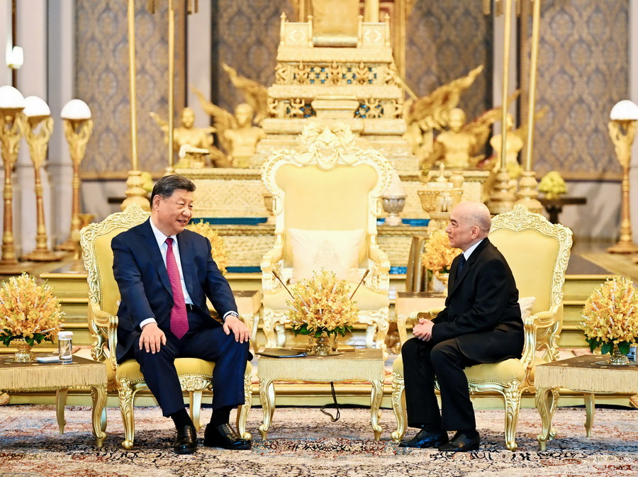 2025年4月17日,柬埔寨国王西哈莫尼同中国国家主席习近平在金边王宫举行会见。 摄影 李学仁/新华社