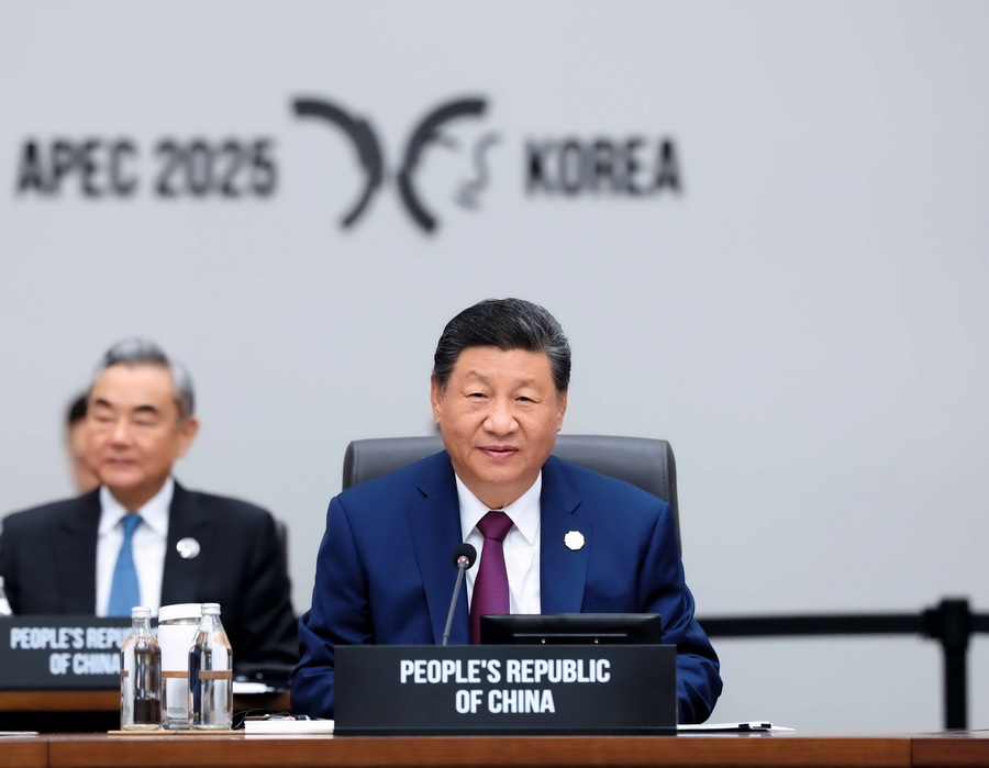 当地时间2025年10月31日,亚太经合组织第三十二次领导人非正式会议第一阶段会议在韩国庆州和白会议中心举行。中国国家主席习近平出席会议并发表题为《共建普惠包容的开放型亚太经济》的重要讲话。 摄影 黄敬文/新华社
