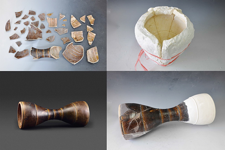 宋代长沙窑瓷腰鼓的修复过程 上海博物馆 供图