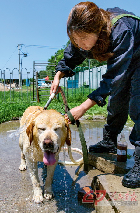 林泽宇现在带的“八戒”,最初接触时也是一头汪汪叫的小凶犬。“连续几天都不让我进犬舍,后来慢慢做亲和训练,打扫犬舍、陪着玩,直到第四天才让我进去,彼此慢慢认识。”跟犬相处了几年,林泽宇已经从怕变成了爱,甚至能从几十头犬的狂吠中一下子分辨出“八戒”的声音。