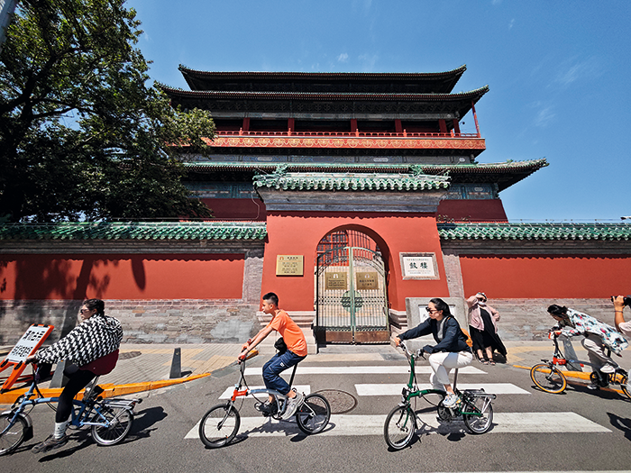 “我的家就在二环路的里面,我的家就在钟鼓楼的这边……”钟鼓楼附近的胡同,是很多老北京人的历史记忆。对于大众游客而言,钟鼓楼又是必逛的网红景点之一。107路公交、鼓楼三岔口路牌、鸽哨、数字沉浸展、胡同街巷探访……“总要来趟鼓楼吧”成为今年的网络热语,来自全国各地的游客站在鼓楼前拍照留念,人们感受到更多的是古老建筑的“新”。2019年11月,北京启动钟鼓楼文物修缮和展示提升工程。一度开设旅游商店的建筑空间经过腾退修缮,实现7个券洞相互连通,明亮宽敞的历史风貌得以重现。保护与传承,为文化遗产注入新活力。