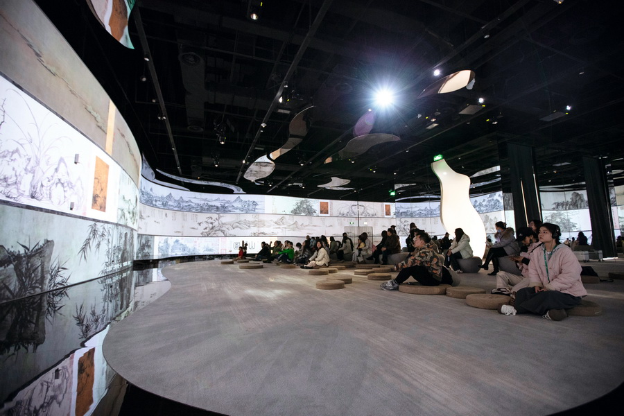 2025年12月24日,观众在上海博物馆东馆数字馆沉浸式体验“山水江南”数字展。 摄影 董芳/人民画报