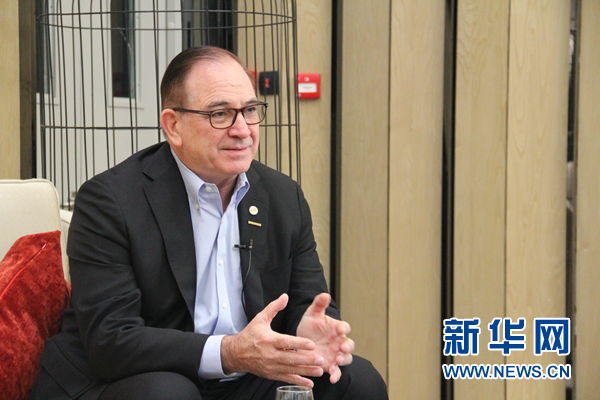 哈福智库总裁、前加州参议院共和党领袖夏乐柏接受新华网专访。新华网发 宋家慧摄