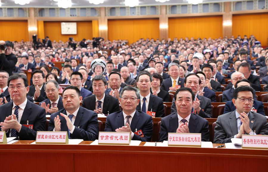 3月8日,十四届全国人大三次会议在北京人民大会堂举行第二次全体会议。新华社记者 陈晔华 摄