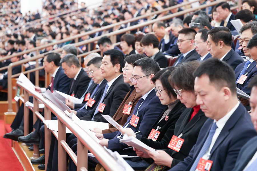 3月8日,十四届全国人大三次会议在北京人民大会堂举行第二次全体会议。新华社记者 李响 摄