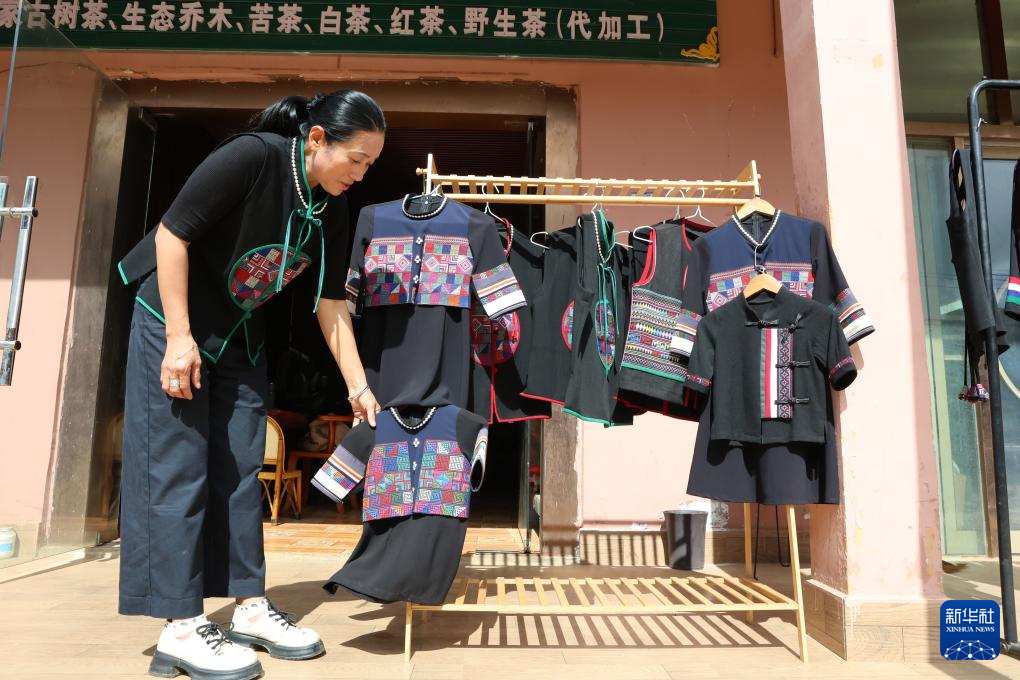 11月15日,景洪市勐龙镇勐宋村村民米玛在整理准备出售的哈尼族传统服装。